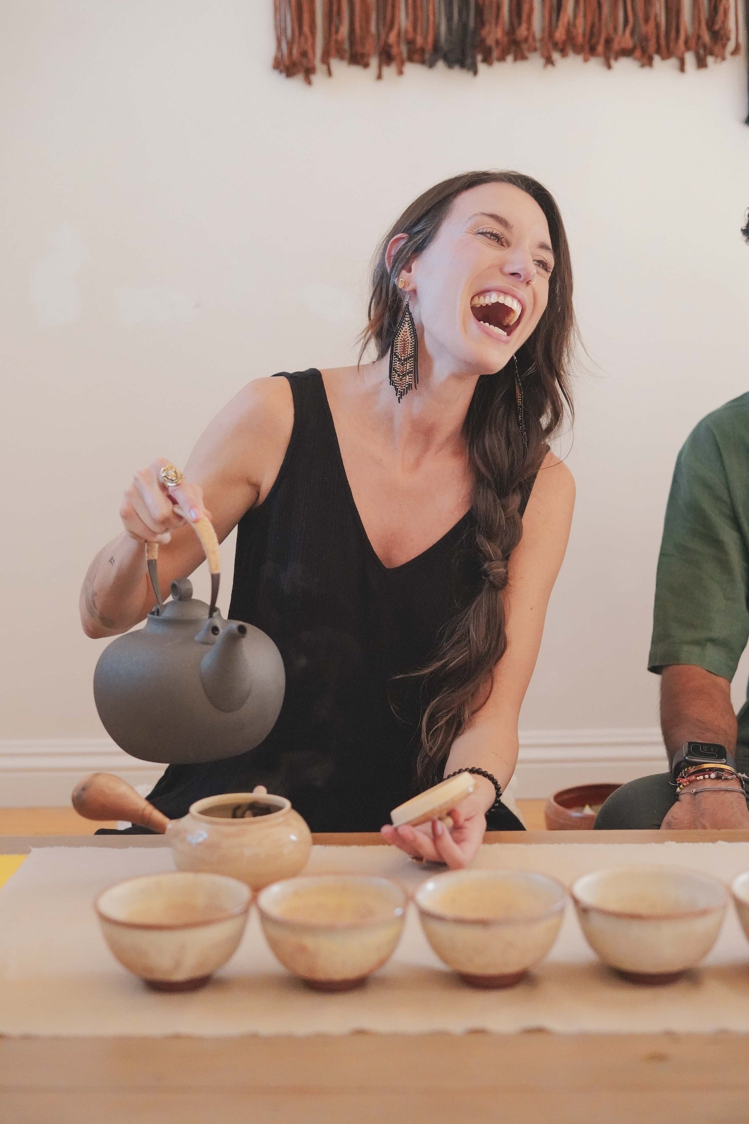 We are here to remind people that all of life is a ceremony. It’s not about the tea. Drinking water can be a ceremony if done with intention, presence, and gratitude. By drawing upon our decades-long backgrounds in yoga, meditation, herbalism, and tea ceremony, we infuse simple ways to cultivate daily peace through tea.
